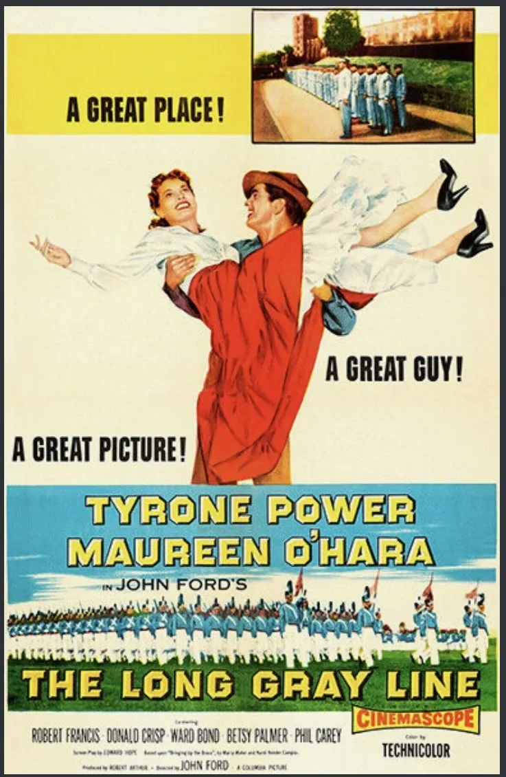 The occasion was the premiere of the movie "The Long Gray Line," starring the beautiful redhead Maureen O'Hara. The movie centered on the former head of athletics at West Point, an Irishman named Marty Maher. The movie makers and the administration of the Academy believed, correctly, that it was appropriate for the Corps of Cadets to be honored guests for the premiere slated for the legendary Radio City Music Hall.