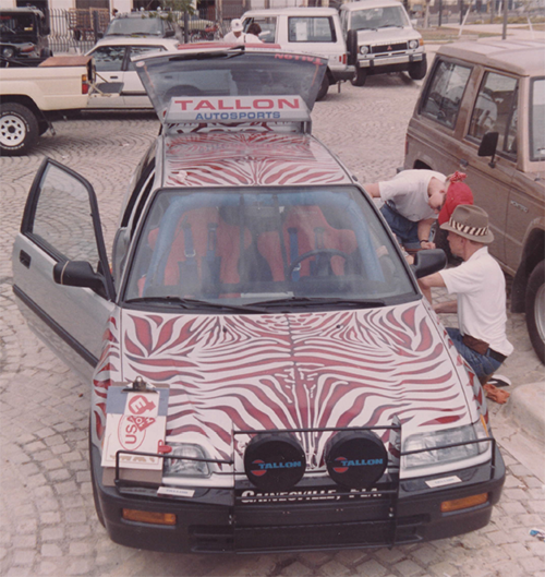 “This race oughta be called Beyond Road Warrior.” I glanced up to see a stevedore just as he disappeared behind what looked like a bale of cotton at the wharf in New Orleans. He had been checking out our brand new little Honda Civic, one of a group of racing cars bound for South America. The tiny car was somehow incongruous with all its wings and racing lights. But there it was, two months in preparation, replete with an exotic zebra-stripe paint job, NASCAR roll cage, fitted race seats, and a modified suspension that was designed to be able to absorb the shock of a land mine.